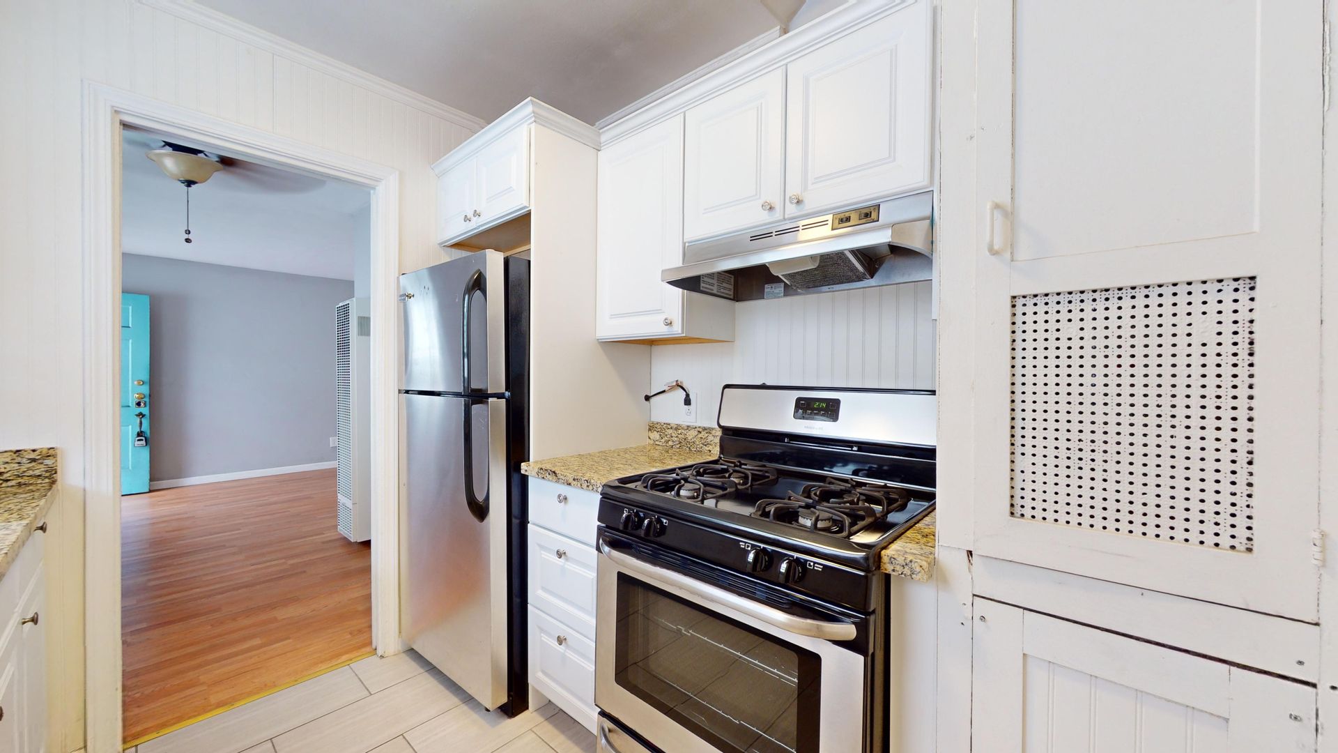 Charming studio apartment includes large living area with built ins and big windows which allow for plenty of natural light. Large storage area with built in drawers and closet lead to the large bathroom, which includes vanity with storage underneath, and shower/tub combo. Updated Kitchen includes granite counter tops, refrigerator and gas oven.