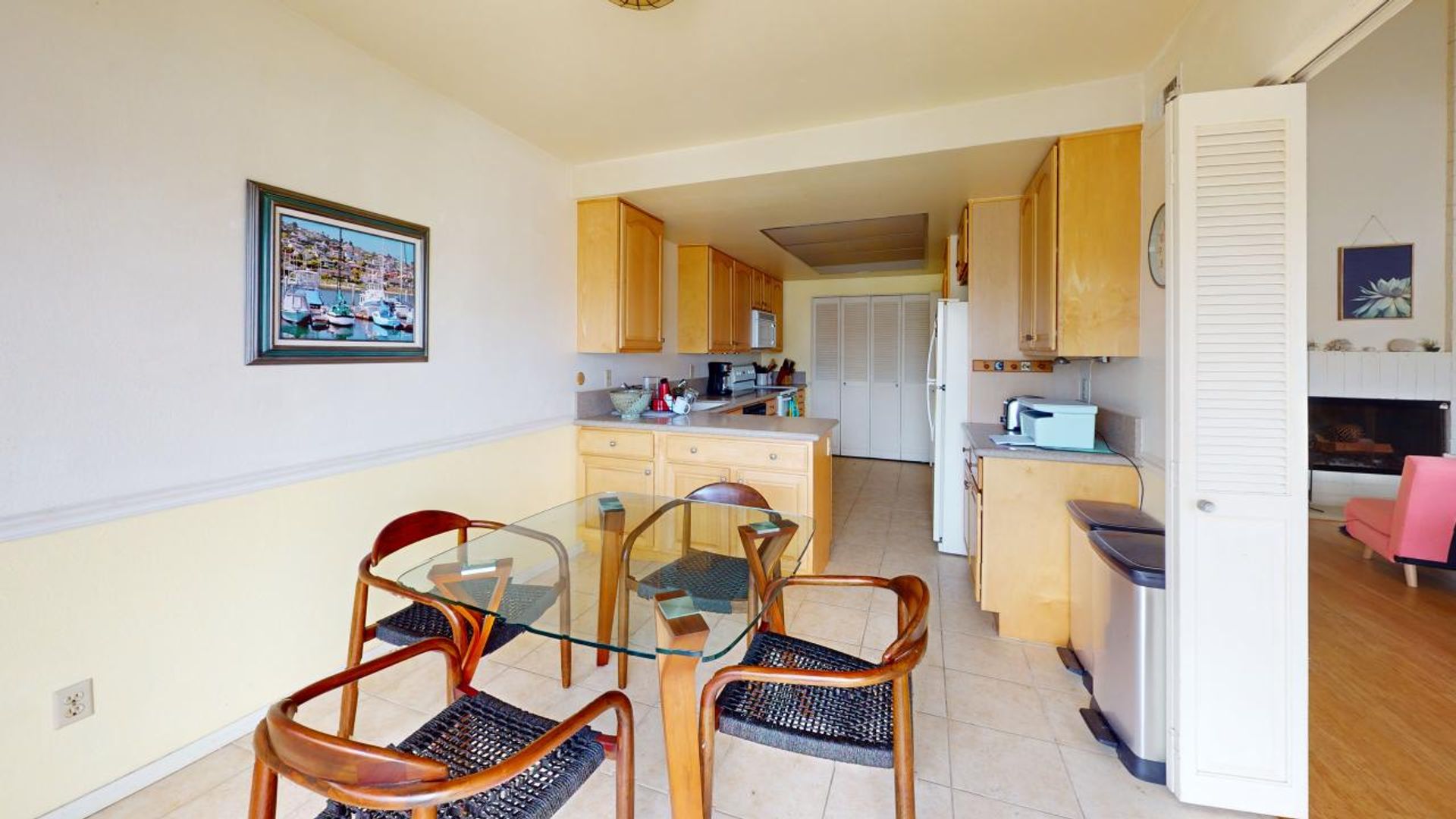 This bright and inviting vacation home greats all who enter with sparkling views of the Coronado Cays Marina. The home features an open floor plan with an abundance of seating in the living room as well as a desk for any remote work needs. The living area also includes a large flat screen television.