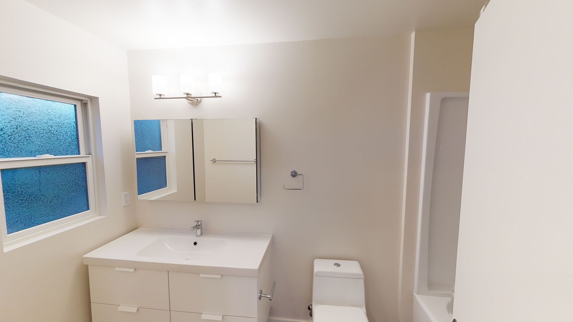 The bathroom includes vanity with storage, and bathtub/shower combo.