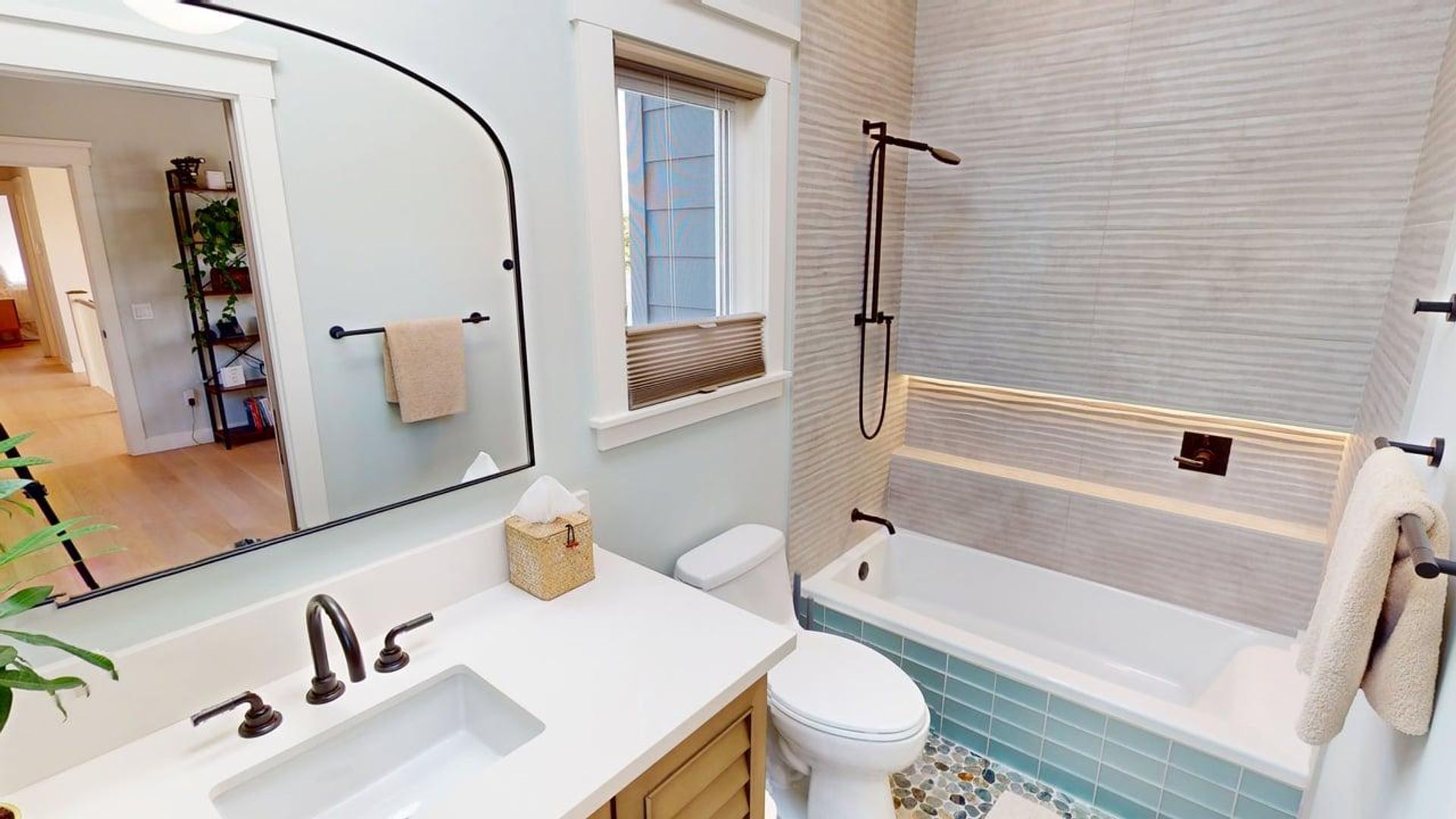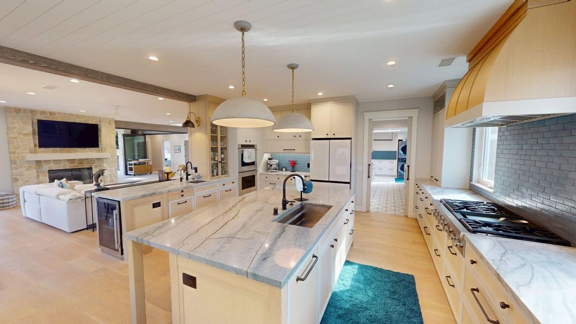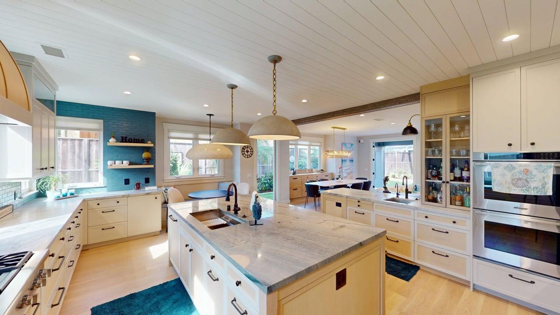 This beautiful 5-bedroom, 4.5-bathroom vacation rental captures Coronado’s signature mix of laid-back beach living and elevated coastal luxury. Light-filled and thoughtfully designed, the home welcomes you with an open-concept great room anchored by a stunning stone fireplace and curated coastal décor that feels both refined and inviting. A full wall of bifold doors opens completely, turning the living room into a breezy extension of the outdoors and creating the effortless indoor–outdoor flow that defines high-end California coastal living.
