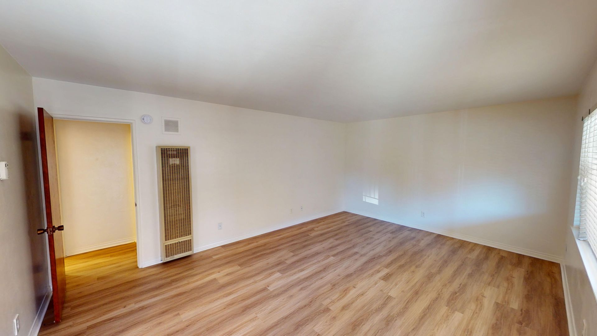 Wall heaters provided, no AC.