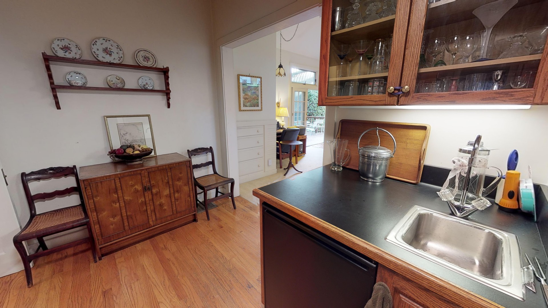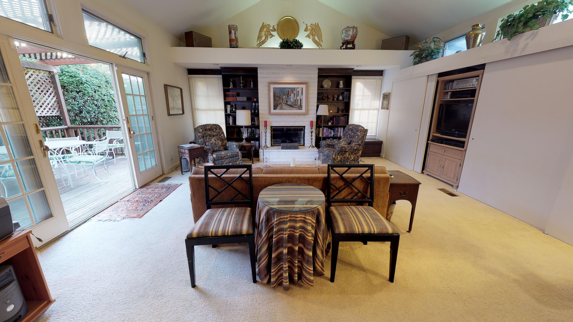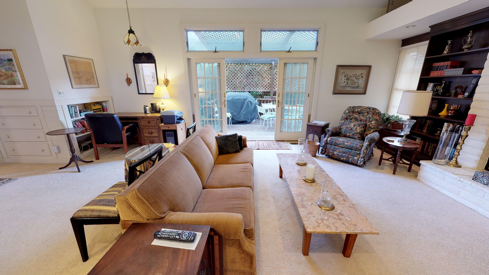 The front entry provides a perfect reading nook and overlooks the front patio and yard. The kitchen is well stocked and offers everything needed to prepare meals and includes a wet bar area with mini fridge and sink. Included appliances are dishwasher, refrigerator, gas cook-top, oven and microwave. A separate dining room can accommodate 6 guests and the kitchen bar can seat 3. The home offers plenty of living space to relax including a formal living room with fireplace and ample seating space and large family room which opens the back patio with fireplace and two desk areas. There is an outdoor patio off the family room complete with a BBQ, table and chairs for 6 people to enjoy meals and time outside.